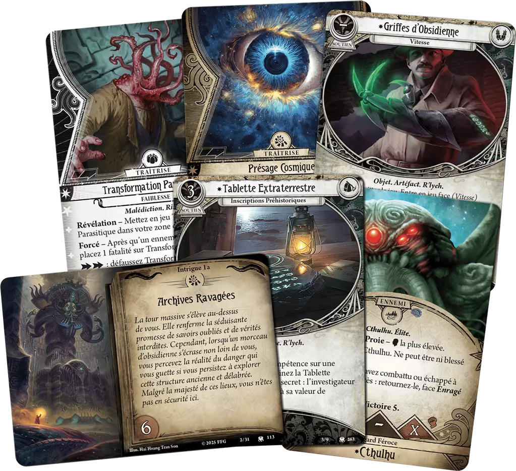 Cette extension contient l'intégralité de la campagne La Cité engloutie. Les joueurs n'ont besoin que d'un exemplaire du jeu Horreur à Arkham: Le Jeu de Cartes pour se plonger dans l'histoire.