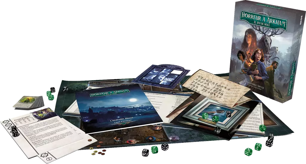 Ce coffret d’initiation est conçu pour les débutants et permet d’apprendre les règles au fil de la partie, les joueuses et joueurs endossent le rôle de talentueux et audacieux investigateurs entraînés dans la merveilleuse affaire qui frappe d’effroi la ville d’Arkham, au plus fort des années 1920.