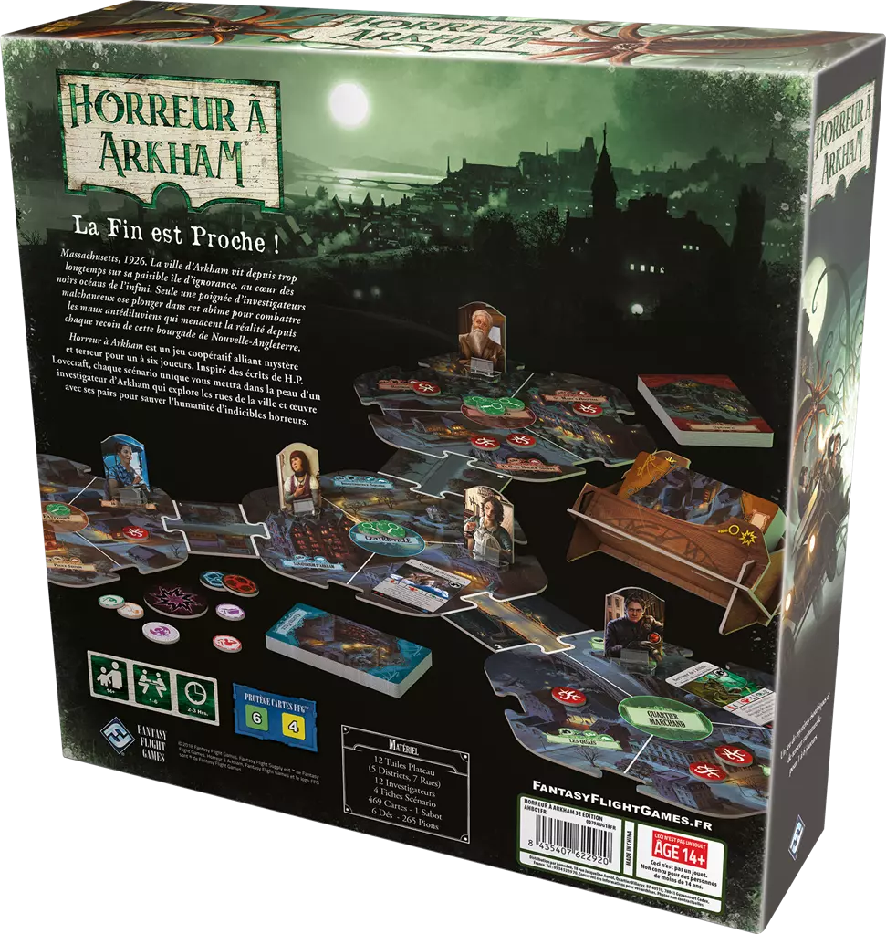 Voici la troisième édition de ce jeu coopératif qui mêle horreur et enquête, dans l'univers imaginé par H.P. Lovecraft. Cette édition mise à jour va vous permettre de vous replonger avec délices et frissons dans les rues sombres et les pubs enfumés, en compagnie de vos compagnons, pour sauver le monde, encore une fois !