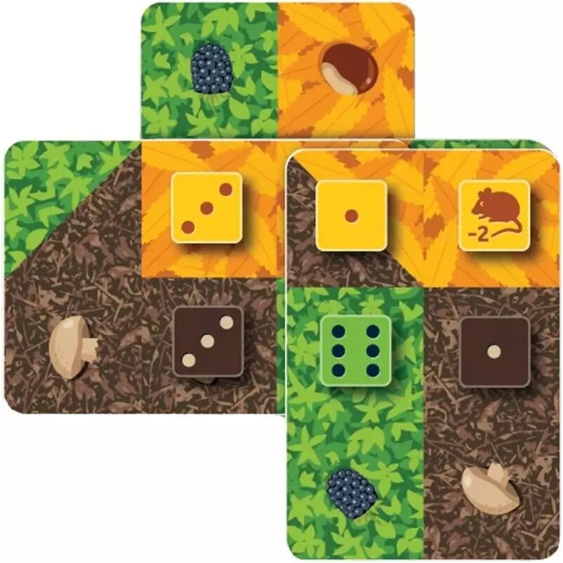 Dans Hortis Automne, votre objectif est simple : récolter le plus de fruits sauvages en plaçant habilement vos cartes pour superposer les mêmes types de zones forestières. Chaque décision compte, car bien positionner vos dés augmentera votre score final, tandis qu’un mauvais agencement pourrait vous coûter cher en pénalités.