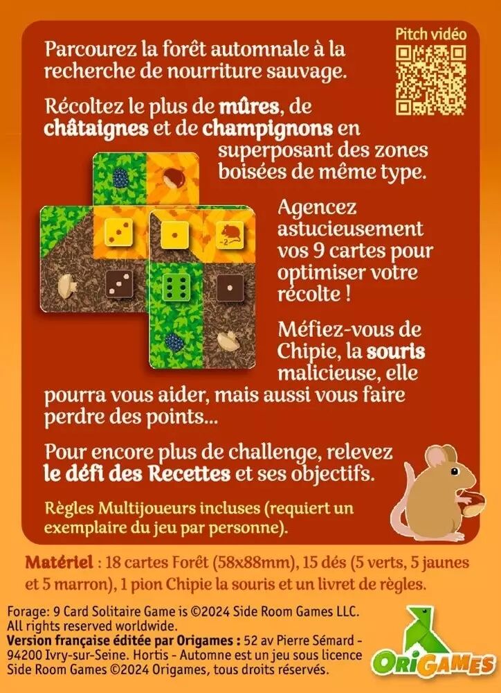 Bien que Hortis Automne soit idéal en solo, il révèle toute sa richesse en mode multijoueur. Chaque joueur utilise son propre exemplaire du jeu, et vous devrez rivaliser d’ingéniosité pour surpasser vos adversaires. Sans oublier Chipie, la souris malicieuse, qui pourrait bien bouleverser vos plans, que ce soit pour vous aider ou vous faire perdre des points !