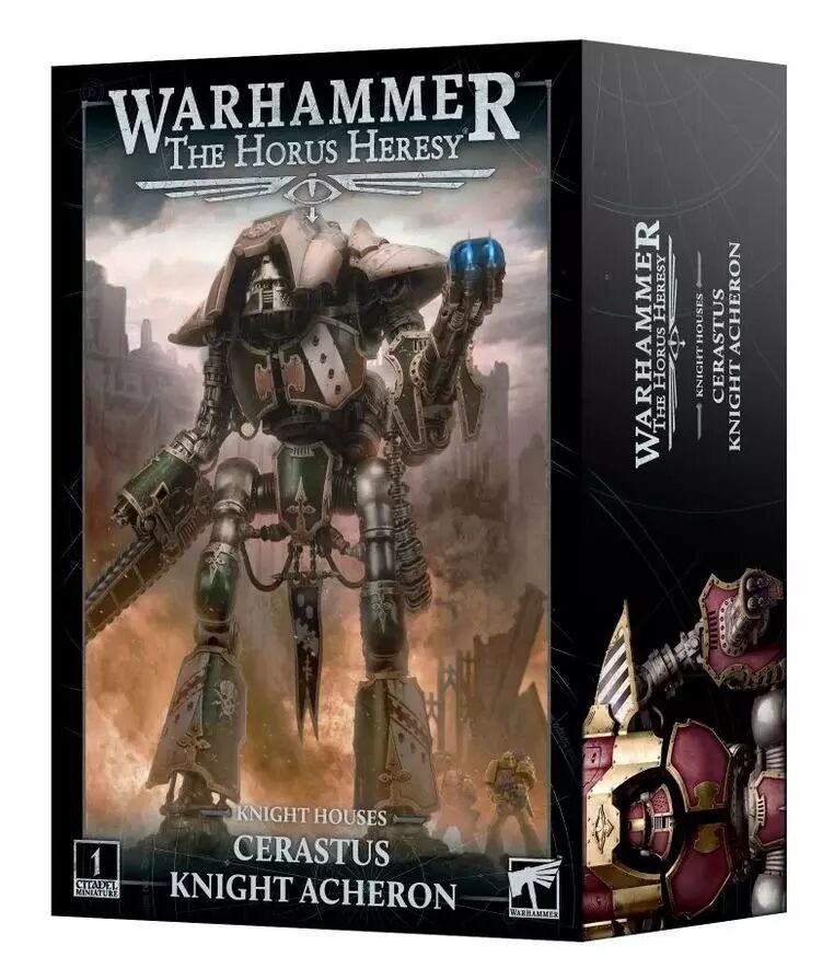 Les Chevaliers Cerastus sont des harnois de guerre sophistiqués et immenses, plus rapides et plus agiles que ceux de classe Questoris, bien plus petits. Le Chevalier Achéron est une vision terrifiante sur le champ de bataille, un faucheur conçu non seulement pour détruire, mais également pour répandre la terreur. La présence d'un Chevalier Achéron prévient l'ennemi qu'il ne doit s'attendre à aucune pitié, car ces armes sinistres ne sont déployées que dans les missions d'extermination, pour dévaster les structures ennemies et purifier leurs terres par les flammes.