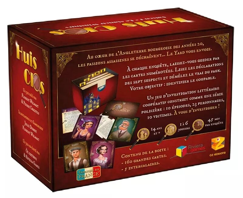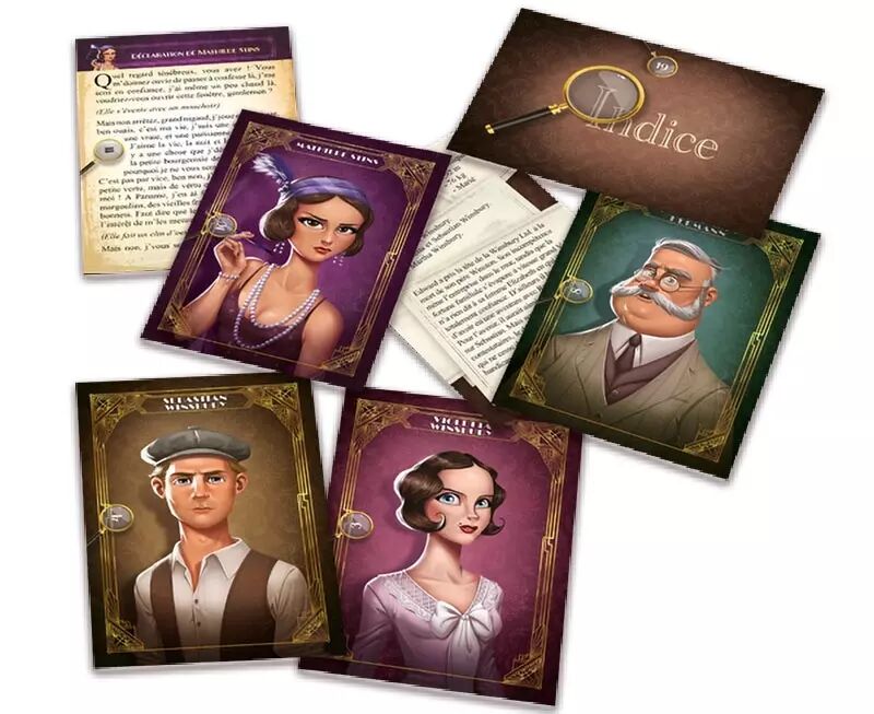 Un gameplay simple et efficace : Pas besoin de règle du jeu, il suffit de se laisser guider par les instructions données sur les cartes, le jeu est installé en moins de 5 minutes, le temps de partie n’excède pas 45 min. Il y a 7 suspects par enquête. Pour chaque personnage, les joueurs ont une fiche d’identité et une déposition à lire à voix haute.