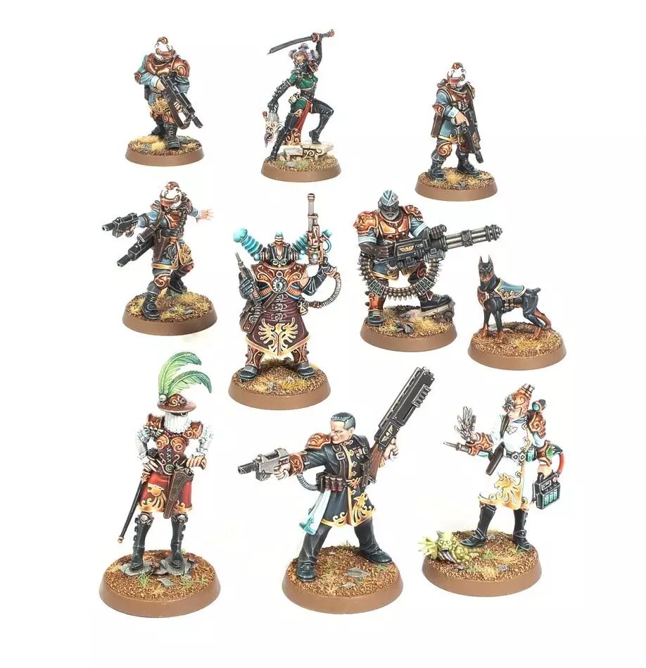 Ce kit en plastique permet d’assembler un Entourage de Libre Marchand et une Escouade de Cosmomarins d’Armes utilisables dans les armées d’Agents de l’Imperium dans les parties de Warhammer 40,000. Le Libre Marchand aux atours luxueux mène une escorte personnelle de trois spécialistes: un Exécuteur du Culte de la Mort, un Adepte Réjuvénat et un Lectro-maestro. Cinq Cosmomarins d’Armes lourdement équipés ajoutent une puissance de feu à longue portée et une expertise en combat en espace réduit, et ils sont accompagnés de leur loyal Canidé de vaisseau.