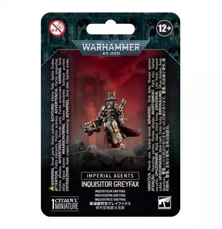 Ce kit en plastique permet d'assembler l'Inquisitrice Greyfax, une Agente de l'Imperium de haut rang au sein de l'Ordo Hereticus. Cette figurine imposante est intégralement revêtue d'une armure énergétique décorée, et elle manie un bolter Condemnor de maître qui tire des pieux d'argent sanctifiés dans le cœur des hérétiques. Son oculaire psyocculum lui permet de déceler l'œuvre des sorciers, où qu'ils tentent de se cacher.