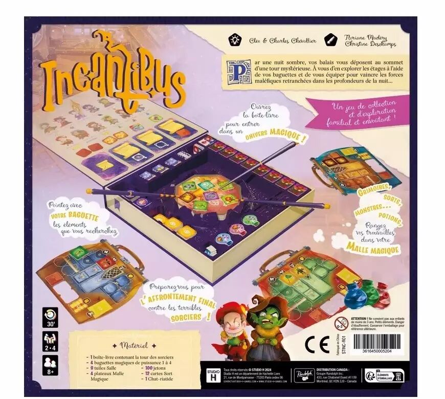 Incantibus transporte les joueurs dans un univers magique où ils explorent une tour étage par étage pour collecter potions, armes, grimoires et pièces d’or. Le thème enchanteur est renforcé par une présentation soignée, avec un plateau offrant une variété de jetons à récupérer pour se préparer à l’affrontement final contre les sorciers malveillants.
