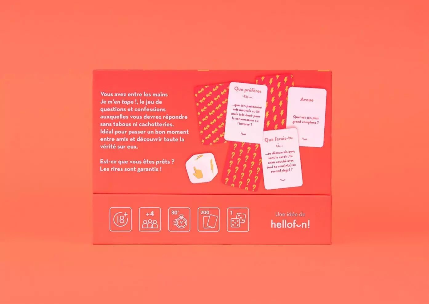 Je m'en tape est le jeu idéal pour mettre l’ambiance et faire tomber les barrières entre amis ou en famille ! Des questions drôles, des défis inattendus et des choix parfois extrêmes, ce jeu vous promet des moments mémorables.