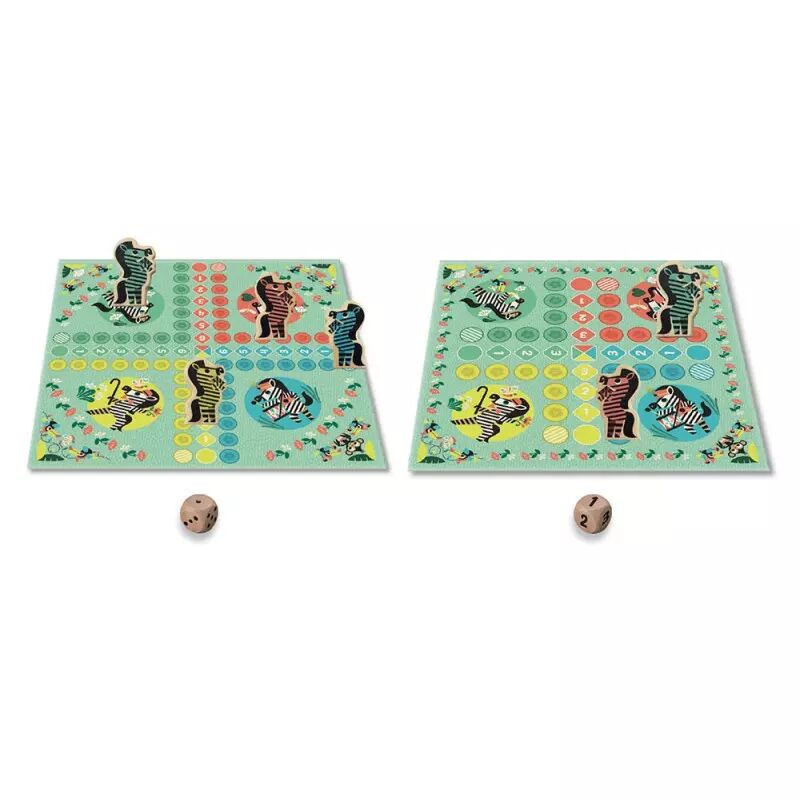 Retrouvez un grand classique chez Auzou : le jeu de l’oie mais cette fois-ci au coeur de la jungle ! Découvrez ce jeu mondialement connu revisité sous les pinceaux de Miriam Bos, et soyez le premier à faire arriver votre toucan au bout de la jungle. En plus de ses 4 beaux pions et ses 3 dés en bois rangés dans un superbe sac en toile, le plateau de jeu recto-verso permet d’avoir deux niveaux ! Le jeu classique et aussi un niveau plus facile avec moins de cases et un dé coloré pour avancer sans avoir à compter accessible à partir de 3 ans !