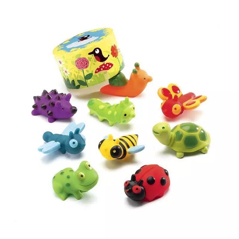 Le jeu se compose de 9 animaux en plastique (papillon, chenille, coccinelle, abeille, tortue, escargot, grenouille, hérisson, libellule), 1 boite servant à cacher les animaux, 15 jetons fleurs et feuilles et la règle de jeu.