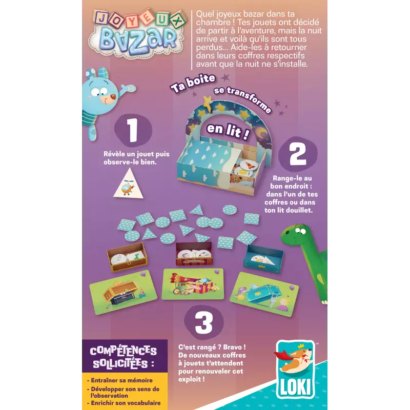 Quel bazar dans ta chambre ! C’est presque l’heure de se coucher, mais tous tes jouets sont partis à l’aventure et se sont perdus ! Aide-les à retrouver leurs boîtes de rangement avant que les étoiles ne brillent dans le ciel nocturne !