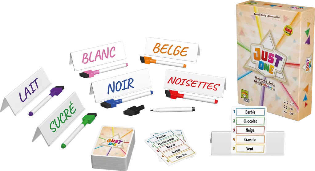 Un joueur doit deviner un mot sur une carte. Pour ce faire, les autres joueurs vont écrire un indice sur leur chevalet. Celui qui devine garde les yeux fermés pendant que les autres comparent leurs mots. Si deux mots sont identiques, on les efface !