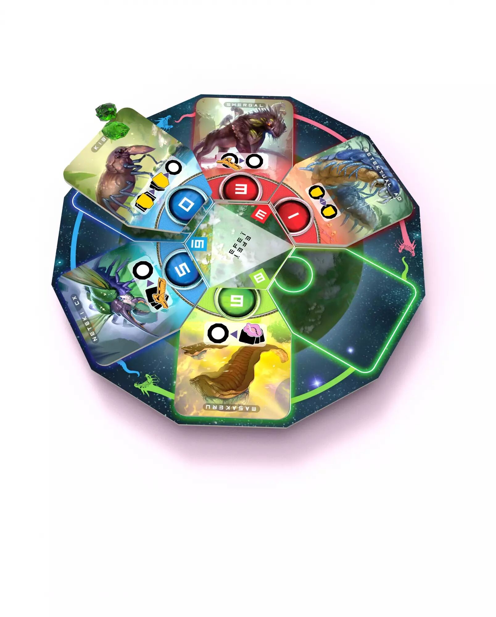 Chaque tour, les joueurs posent des créatures influençant la prédation, la décomposition et l’extinction sur différentes planètes. Cette gestion fine des chaînes éco permet de déclencher des effets puissants ou de perturber les stratégies adverses, créant une tension dynamique jusqu’à la fin.