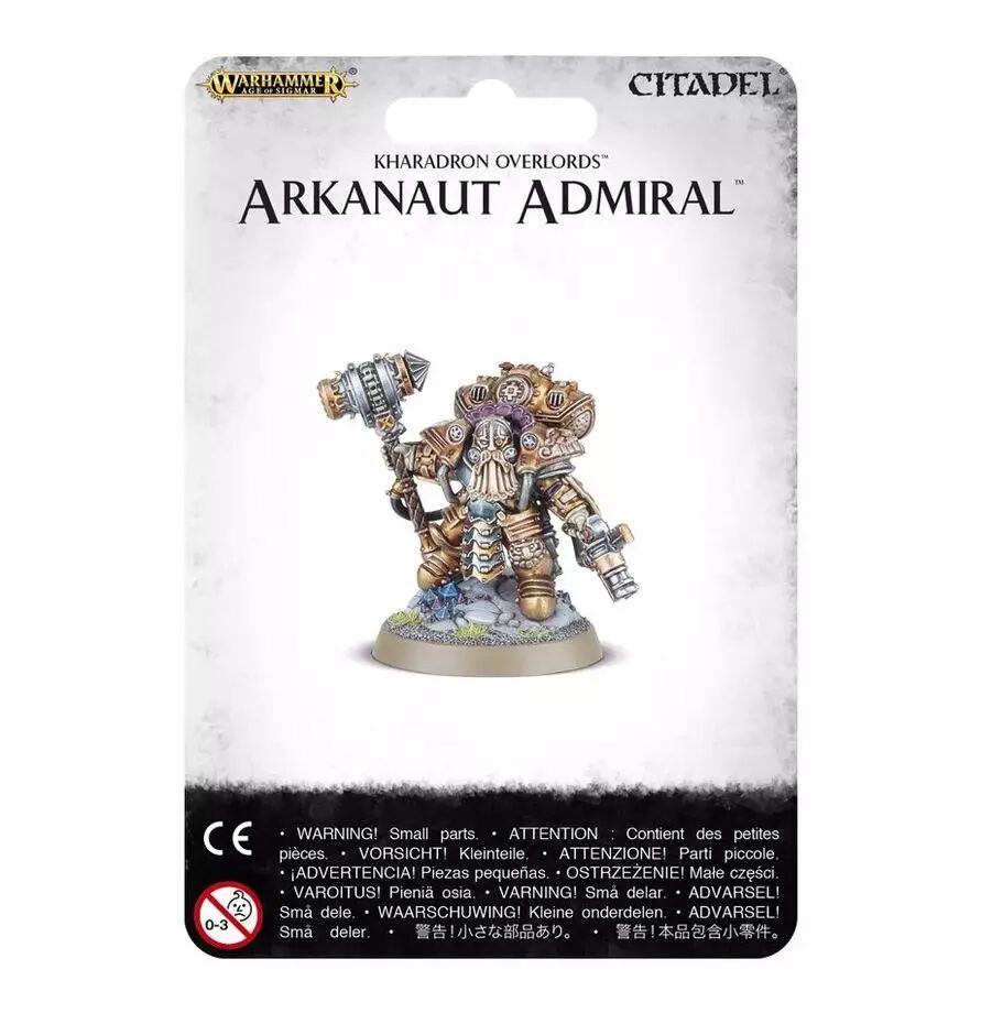 Ce kit plastique contient les pièces nécessaires pour assembler un Amiral Arkanaute. Il dirige son armée de Magnats Kharadrons en montrant l'exemple, en se ruant dans la mêlée avec son grand marteau de Skalf et son pistolet à salve. Il connaît le Code Kharadron mieux que personne, ce qui lui donne l'avantage au combat. Son armure ornementée est bardée de conduits, de valves et de gadgets – il a accumulé les améliorations durant ses années de service pour mieux combattre et diriger. La figurine est juchée sur un socle détaillé avec des roches cristallines: un surplomb parfait pour surveiller le champ de bataille.