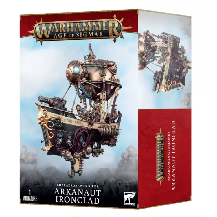 Joyau de la flotte, le Cuirassé Arkanaute est un aéronavire majestueux. Hérissé d'armes, il est doté de vastes cales pour transporter de l'éther-or ou embarquer des Compagnies d'Arkanautes ou des Foudroyeurs Grundstok. Les progrès des endrinieurs kharadrons leur ont permis de créer des bâtiments de plus en plus gros pour les aéroflottes, et le Cuirassé en est le dernier en date. Bardés de plaques de fer rivetées, ces navires massifs déversent une quantité étonnante de tirs éthériques, de bombes et de torpilles sur tout ce qui a l'audace de se dresser entre les Magnats Kharadrons et l'éther-or qu'ils convoitent.