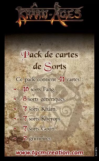 Réf. : KASORT1 Un paquet de cartes avec tous les sorts de Khârn-Ages pour faciliter leur utilisation durant vos parties.