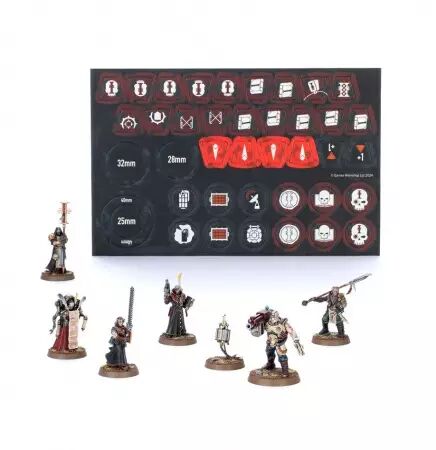 Dans la boîte, vous trouverez également une planche de 39 pions de Suite Inquisitoriale, afin de garder facilement un œil sur votre équipement et les effets en cours dans le feu de la bataille.