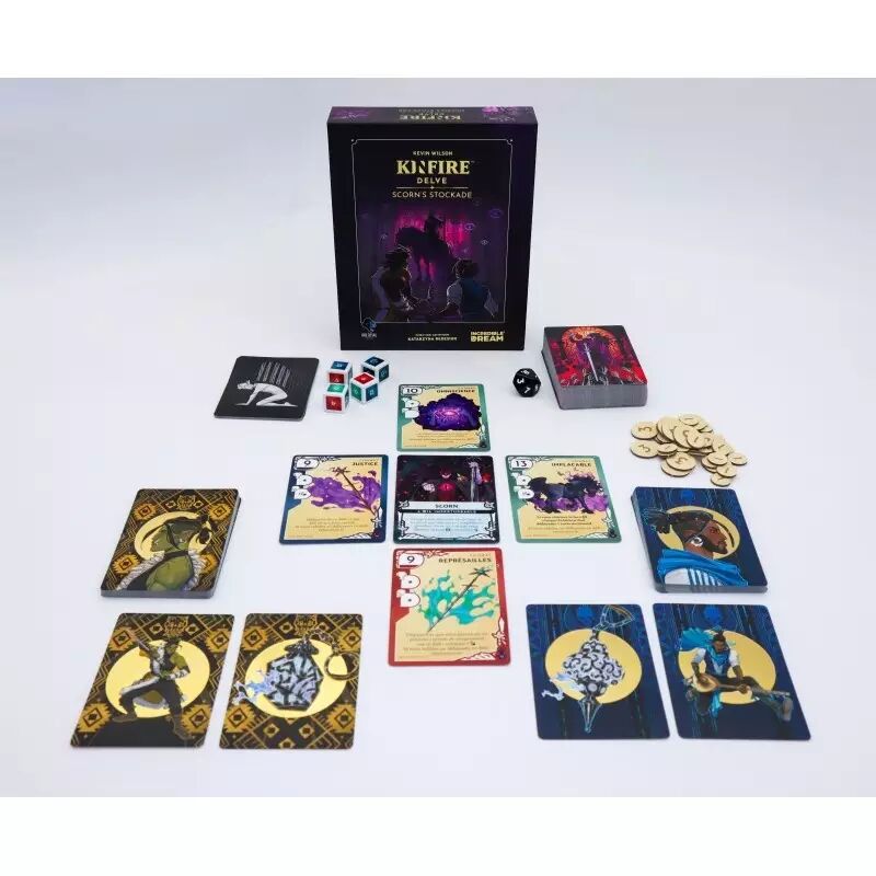 Dans Kinfire Delve : Scorn's Stockade, un jeu de cartes tactique et coopératif pour 1 à 2 joueurs, vous vous frayerez un chemin à travers le jeu de cartes de défi du puits pour atteindre Scorn, le maître du puits, et les affronterez dans une bataille finale épique.