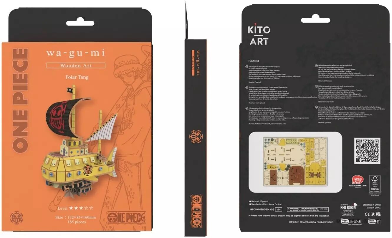 Plongez sous les vagues avec le Polar Tang, le sous-marin ultramoderne de Trafalgar Law, capitaine des Heart Pirates. Ce kit d'assemblage Kito Art, qui fait partie de la collection d'art en bois wa-gu-mi, mesure 16 x 13 x 8,5 cm une fois assemblé et est basé sur son apparition dans l'anime « One Piece ». L'ensemble se compose de 185 pièces de contreplaqué découpées au laser et peintes, réparties sur trois panneaux de 17 x 13 cm. Les instructions sont incluses. Il est présenté dans une boîte avec une fente pour l'accrocher au point de vente.
