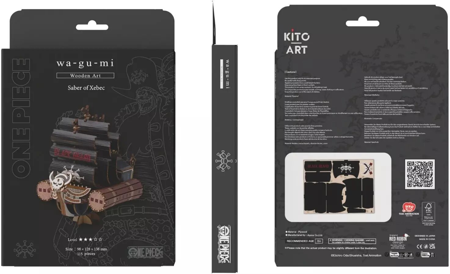 Le sabre de Xebec, l’un des navires les plus redoutables de l’anime « One Piece », représente la puissance, l’ambition et la force de l’équipage de Barbe Noire. Cet ensemble de la collection d’art en bois wa-gu-mi de Kito Art mesure 14 x 10 x 13 cm une fois assemblé. Il se compose de 115 pièces de contreplaqué prédécoupées et peintes, réparties sur quatre panneaux de 17 x 13 cm. Les instructions sont incluses, assemblage sans colle.
