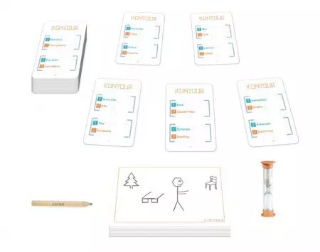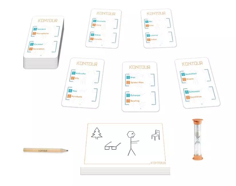 Contenu : - 72 cartes - 1 bloc de dessin - 1 crayon - 1 sablier - Règle du jeu - Boîte métal