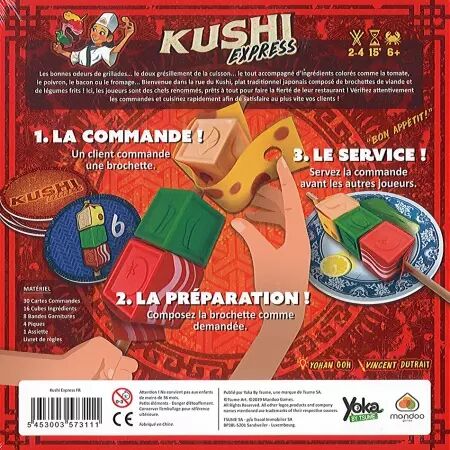 A chaque tour de jeu, une nouvelle commande sera révélée et vous devrez être le plus rapide à utiliser votre matériel (pique, légumes, accompagnements) et réaliser la commande demandée.
