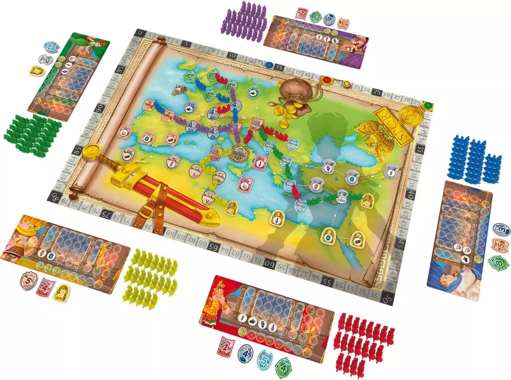 Pour cela, rien de plus simple : reliez entre elles des villes, grâce aux routes dont les Romains étaient friands. Toute ville que vous reliez ainsi à Rome vous rapporte des points, à travers des jetons Villes et Richesses. Une fois que l'Empire Romain a bâti des routes jusqu'à tous les centres urbains du continent, la partie s'achève et le soldat avec le plus de points l'emporte !