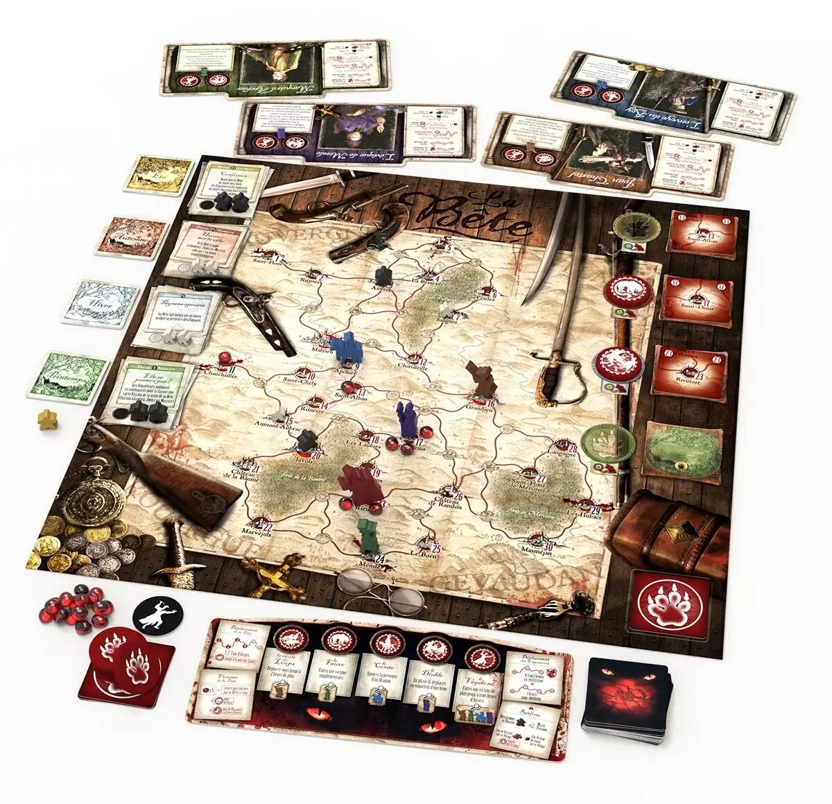 C ’est en l’an 1764 que la bête apparut sur nos terres et les fit siennes. Un an plus tard, sa renommée dépassait les frontières de notre province et l’on commençait à penser que nul mortel n’en viendrait jamais à bout. Sous ses assauts, le pays de Gévaudan s’enfonçait peu à peu dans les ténèbres. La Bête est un jeu asymétrique opposant un joueur endossant le rôle de la Bête du Gévaudan à un ou plusieurs joueurs incarnant les Enquêteurs historiques dans la Lozère de la France du XVIIIème siècle. Pour gagner, la Bête doit faire au moins 25 victimes avant la fin du jeu qui se déroule saison après saison pendant 3 ans. Le ou les Enquêteurs doivent soit l’en empêcher, soit la démasquer en identifiant son identité secrète.