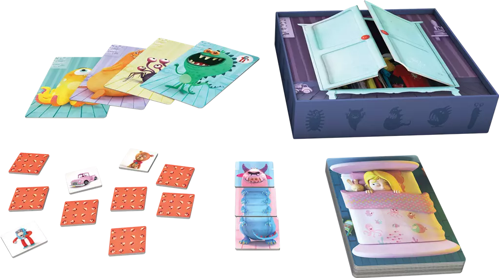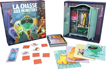 La Chasse aux monstres est un jeu de mémoire coopératif. Comment ça fonctionne ? Pendant la nuit, des monstres sortent de sous le lit de l'enfant. Pour les chasser dans le placard et gagner la partie, il faudra retrouver le bon jouet. Attention, si on se trompe trop souvent, de nouveaux monstres apparaîtront. Et si ceux-ci entourent complètement le lit, ce sont eux qui remporteront la partie !