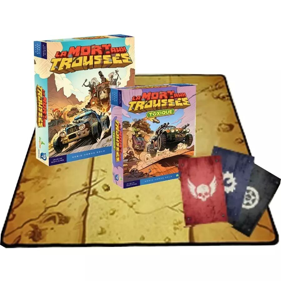 Le Pack All In de La Mort aux Trousses, comprend le jeu de base + l'extension Toxique + 1 tapis de jeu et des protège-cartes.