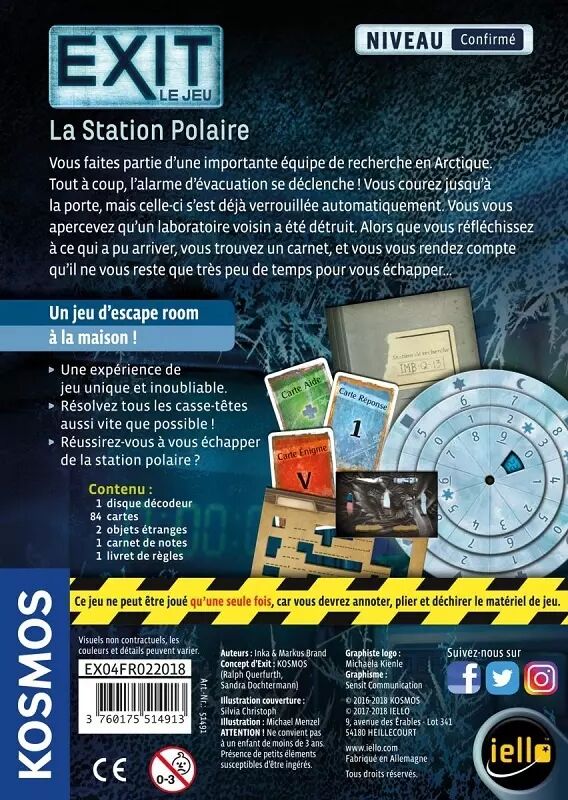Vous faites partie d’une importante équipe de recherche en Arctique. Tout à coup, l’alarme d’évacuation se déclenche ! Vous courez jusqu’à la porte, mais celle-ci s’est déjà verrouillée automatiquement. Vous vous apercevez qu’un laboratoire voisin a été détruit. Alors que vous réfléchissez à ce qui a pu arriver, vous trouvez un carnet et vous rendez compte qu’il ne vous reste que très peu de temps pour vous échapper...