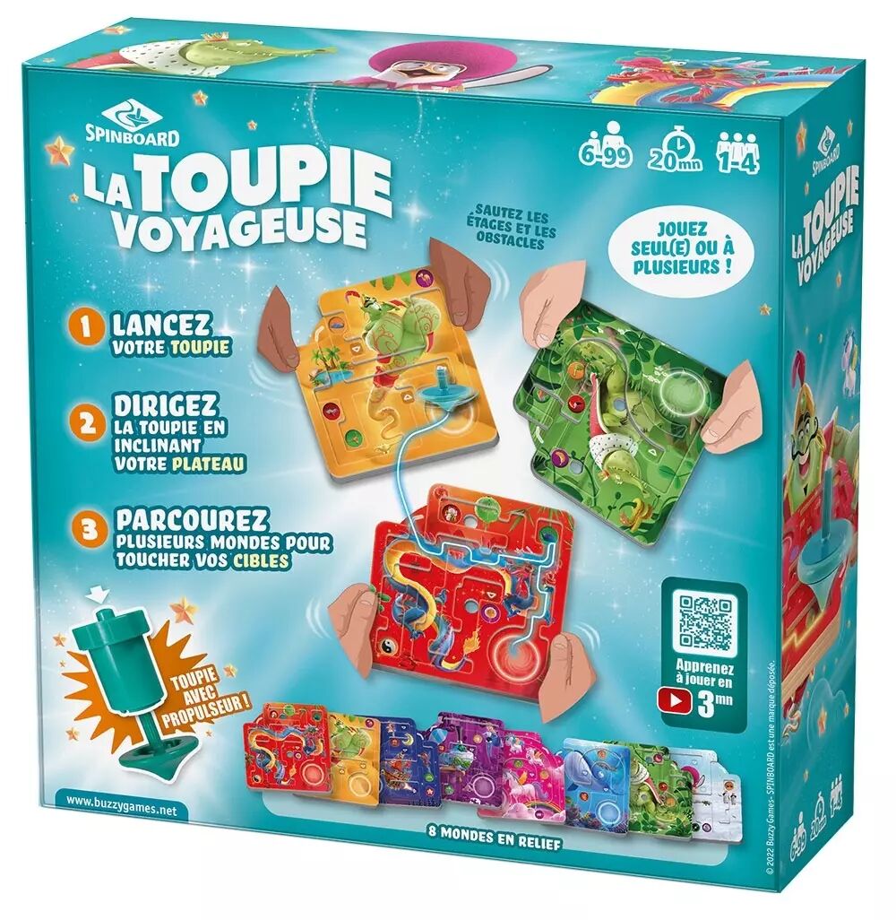 LA TOUPIE VOYAGEUSE est un jeu solo ou coopératif pour tout âge dès 6 ans.