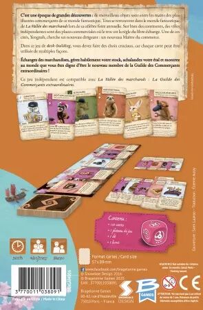 Dans ce jeu de deck-building, vous devez faire des choix cruciaux, car chaque carte peut être utilisée de multiples façons. Échangez des marchandises, gérez habilement votre stock, achalandez votre étal et montrez au monde que vous êtes digne d'être le nouveau membre de la Guilde des Commerçants extraordinaires !