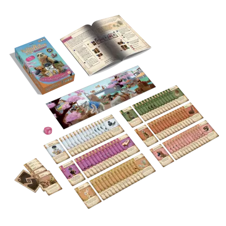 Contenu : - 110 cartes de haute qualité - 1 plateau de jeu - 1 dé en bois - 1 livret de règles