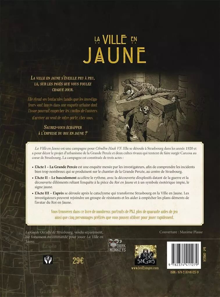 La campagne est constituée de trois actes : le premier est une enquête menée par les investigateurs, afin de comprendre les incidents bien trop nombreux qui se produisent sur le chantier de la Grande Percée, au centre de Strasbourg. Dans le second, le rythme accélère, avec la découverte d’explosifs datant de la guerre et d’éléments reliant l’enquête à la pièce du Roi en Jaune. L’après se déroule après le cataclysme qui transforme Strasbourg. Les investigateurs peuvent rejoindre un groupe de résistants et les aider à empêcher des plans déments. Vous trouverez dans ce livre de nombreux portraits de PNJ, plus de quarante aides de jeu ainsi que cinq personnages prétirés que vous pouvez utiliser pour jouer rapidement.