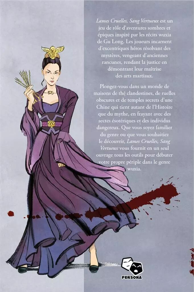 Le livre contient tout le nécessaire pour se plonger dans la Chine impériale : outre le système de jeu, l’ouvrage décrit les tenants et aboutissants du genre wuxia et fournit sur plus de 100 pages un vaste cadre de jeu qui servira de bac à sable pour les aventures des personnages, avec des dizaines de PNJ, lieux, sectes et factions. Deux aventures sont incluses pour amorcer sa propre campagne.
