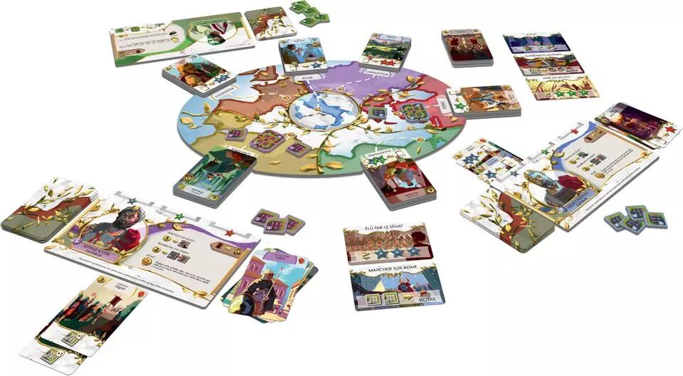 Vous êtes des hauts dignitaires romains et vous allez vous affronter pour devenir le seul et unique empereur de Rome. Préparez votre ascension au pouvoir en achetant des cartes, pour construire votre réseau d’influence (deck). Choisissez le moment opportun pour vous déclarer empereur. Déployez alors vos légions, pour confronter les autres prétendants et gagner des objectifs. Mais attention, car la plupart des objectifs pourront vous être volés en cours de partie ! Le premier prétendant à contrôler 4 objectifs en même temps deviendra l’unique empereur de Rome… Ce jeu a été créé en partenariat avec Lugdunum - Musée et Théâtres romains de Lyon avec le soutien de l’équipe scientifique du musée.