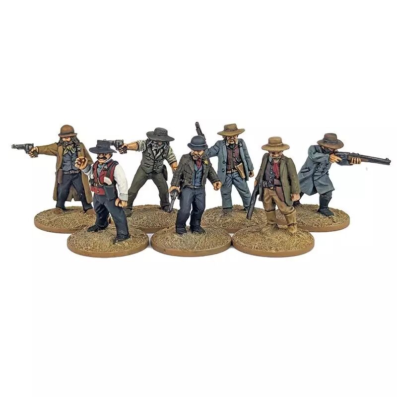 Prenez le contrôle avec la faction Lawmen ! 7 figurines métal premium représentant shérifs, marshals et adjoints. Disciplinés, organisés et coordonnés, les Lawmen excellent en tactique de groupe et contrôle du terrain. Capacités uniques, excellente qualité, prêts à peindre.