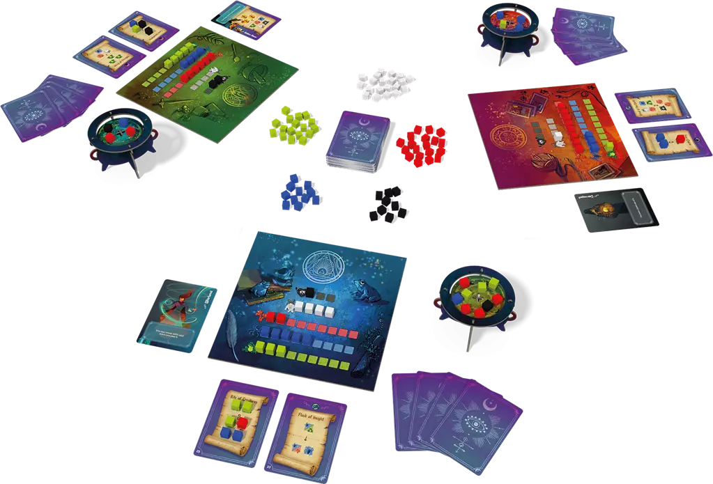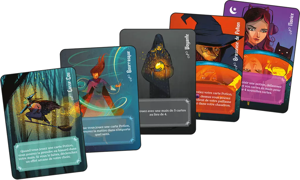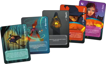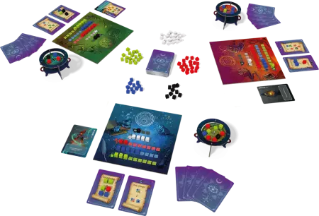 Réalisez des potions magiques et faites déborder le chaudron de votre adversaire pour remporter la partie. Être une sorcière, c’est manier de puissants ingrédients magiques. Mais attention, une sorcière ne peut exercer qu’un certain nombre de pouvoirs avant que tout ne lui explose à la figure. Choisissez judicieusement vos recettes pour vider votre établi et remplir votre chaudron. Le premier joueur à faire déborder le chaudron de son adversaire avec suffisamment d’ingrédients gagne la partie !