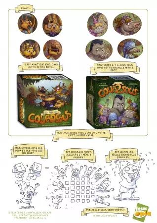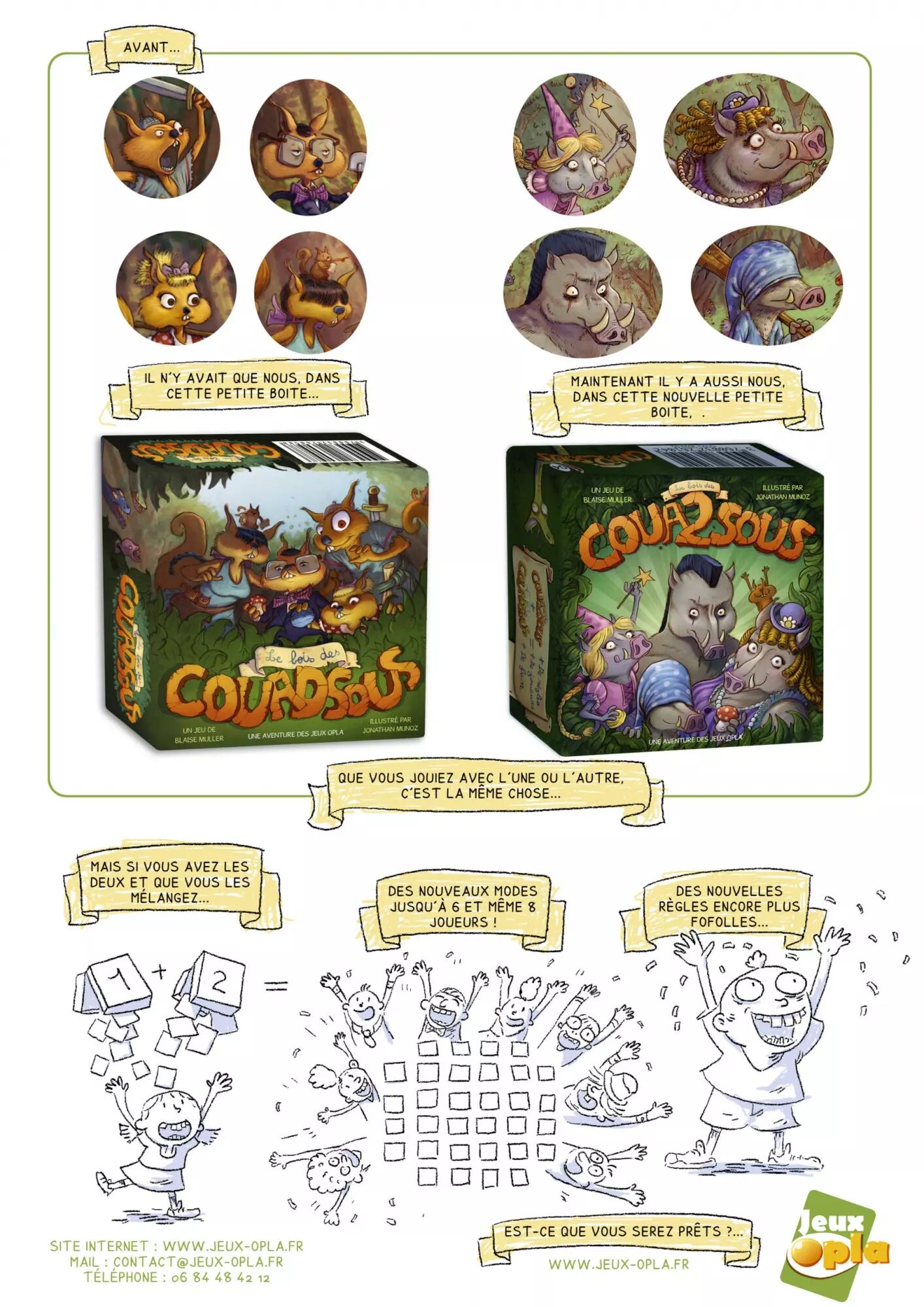 Le Bois des Coua2sous propose la même mécanique de jeu que son grand frère Le Bois des Couadsous, dans un nouveau décor et avec de nouveaux personnages : les Sangliers sont arrivés ! Ainsi, ceux qui n'ont pas le jeu peuvent choisir lequel ils préfèrent, et... Ceux qui ont les deux jeux auront de nouvelles et riches perspectives de jeu !
