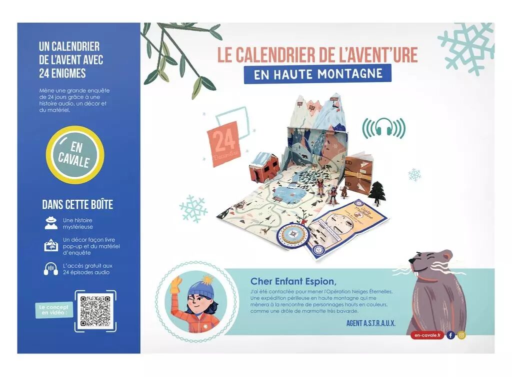 Le "Calendrier de l'Avent'Ure" offre une expérience passionnante pour toute la famille sur une période de 24 jours. Il s'agit d'une aventure en 24 épisodes qui combine un décor "livre pop up" à construire et à observer avec une histoire audio à écouter.