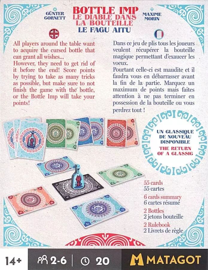 Dans ce jeu de plis tous les joueurs veulent récupérer la bouteille magique permettant d’exaucer les vœux.