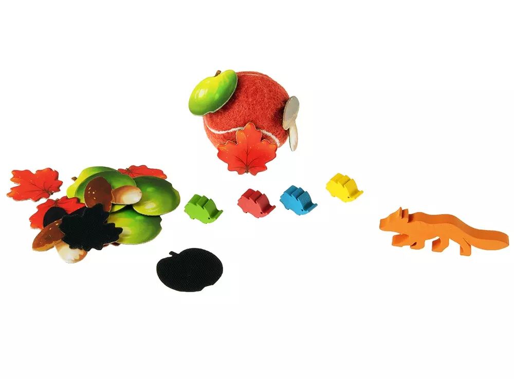Contenu : - 1 boule hérisson - 1 tête de hérisson - 1 renard - 4 hérissons - 7 plateaux double face - 18 jetons forêt avec du velcro - Règle du jeu