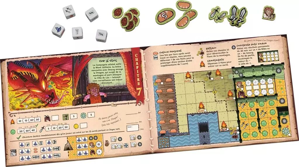 Chaque joueur guide Bilbo à travers les péripéties de son voyage. La combinaison des résultats des dés et des tracés sur carnet fait appel à la stratégie et à la créativité, rendant chaque partie unique et pleine de surprises.