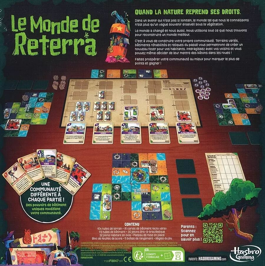 Le Monde de Reterra vous transporte dans un univers post-apocalyptique fascinant où l'humanité a su s'adapter et cohabiter avec la nature. Les illustrations pleines de charme et le thème original du jeu vous plongent dans une expérience de jeu immersive et très bien adapté au sujet.