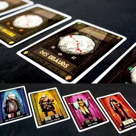 Tiré de la licence de BD éponyme, le Roy des Ribauds vous invite à plonger dans les complots politiques de la France moyenâgeuse. Manipulez la composition de la cour du Roy pour accomplir l'un des complots possibles, et gagner la partie ! Avec 4 types de carte, chacune ayant un effet spécifique, et 3 conditions de victoire possible, Le Roy des Ribauds est un petit bijou de minimalisme, profondément stratégique. Les cartes disposent également de reliures dorées, donnant un aspect premium à l'ensemble.