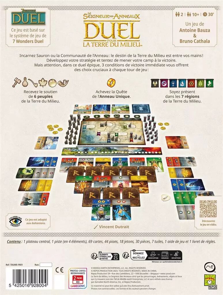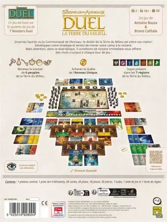 Rien à redire, Antoine et Bruno nous livrent une fois de plus un banger ! Le jeu repose sur le systeme de 7 Wonders Duel et en y ajoute juste ce qu'il faut pour exploiter l'univers du SdA, Parfait.