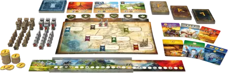 La structure du jeu repose sur trois chapitres où les joueurs récupèrent des cartes pour activer des effets spécifiques. Chaque carte appartient à une couleur qui représente une action particulière : or, compétences, quêtes ou forces militaires. Le positionnement de ces cartes évolue à chaque chapitre, offrant un renouvellement constant des stratégies à adopter.