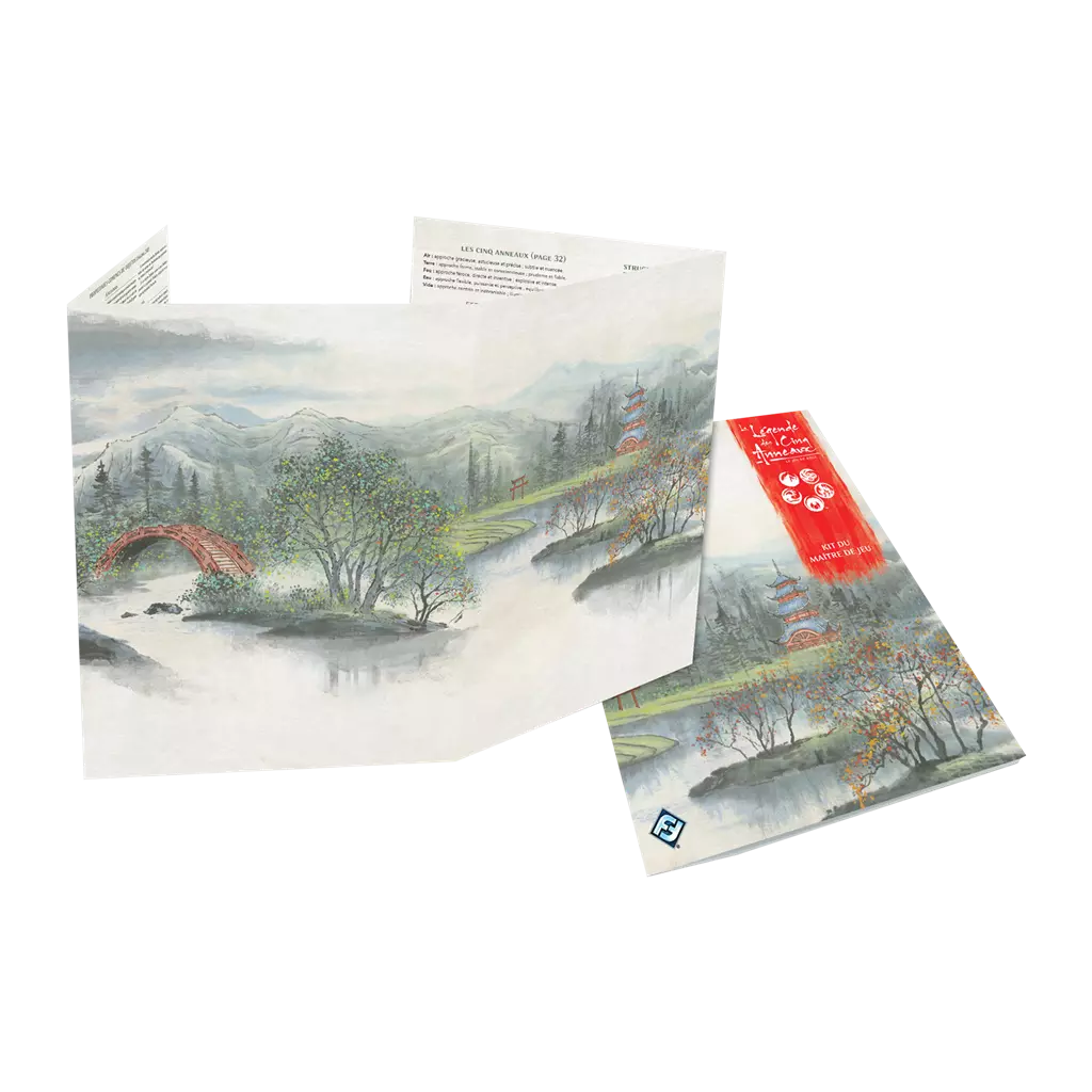 Dans le Kit du MJ de La Légende des Cinq Anneaux, vous trouverez, en plus d'une aventure inédite, de nouvelles règles pour créer des personnages du mystérieux Clan de la Tortue, le clan mineur qui dirige le port de la Marée Douce, ainsi qu'un luxueux paravent du maître de jeu rassemblant les règles les plus courantes.
