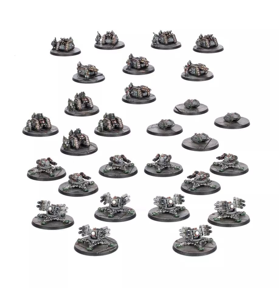 Ce kit plastique permet d'assembler 40 figurines des Solar Auxilia à l'échelle epic, réparties sur 28 socles. Vous trouverez des plates-formes d'armes lourdes Rapier et des tourelles Tarantula dotées de diverses options d'armes, ainsi que des chars-drones Cyclop explosifs. Ajoutez ces détachements de soutien pour vous assurer que votre armée frappe fort, et qu'elle puisse abattre les cibles les plus robustes de l'Âge des Ténèbres.