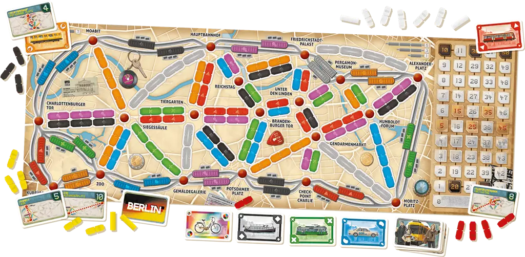 Une nouvelle déclinaison des célèbres Aventuriers du rail. Parcourez la capitale allemande et visitez le musée de Pergame ou la porte de Brandebourg ! Dans cette édition, utilisez deux modes de transports, les tramways et les métros pour un nouveau défi, abordable par les débutants et défiant les joueurs aguerris.
